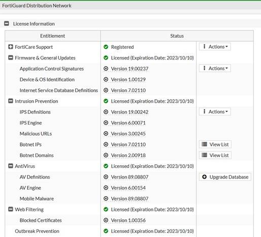 Sprawdzenia możesz dokonać również za pomocą graficznego interfejsu GUI: System->FortiGuard: