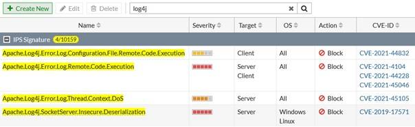 Oprogramowanie FortiOS - ochrona przed atakami Log2Shell