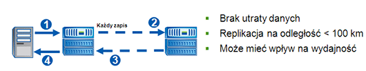 Replikacja synchroniczna: Dane są kopiowane na drugi serwer w czasie rzeczywistym. Proces zapisu jest wstrzymywany, dopóki dane nie zostaną zapisane na obu serwerach. Oferuje to najwyższy poziom spójności danych, ale może wprowadzić pewne opóźnienia w wydajności.