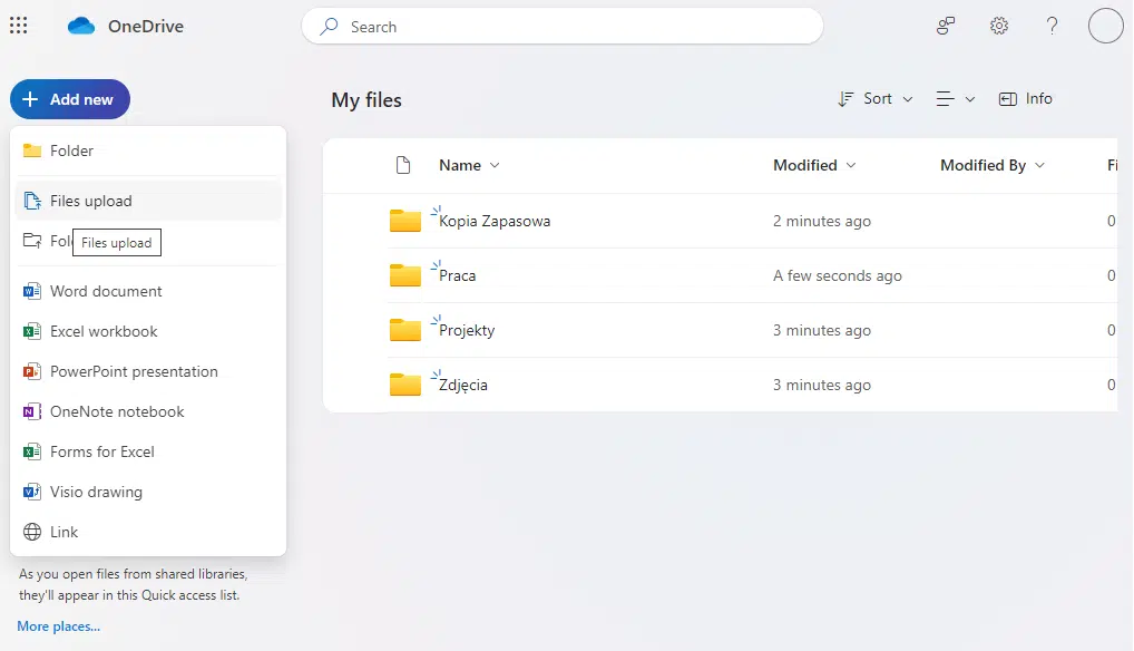 Dodawanie plików do OneDrive w przeglądarce