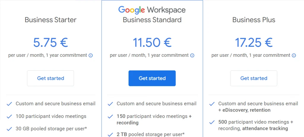 Google w swoich pakietach współdzieli przestrzeń na pliki i skrzynkę mailową. Pakiet Business – dwukrotność, tego co zapewnia nam Microsoft na tym samym poziomie subskrypcji. Każda Starter zapewnia Ci 30 GB miejsca na te dwie rzeczy – to niewiele w porównaniu do konkurenta. W tym przypadku warto zastanowić się nad subskrypcją Business Standard. Otrzymasz wtedy aż 2 TB miejsca, gdzie subskrypcja Google uprawnia Cię do korzystania z aplikacji Gmail, Dysku Google, Chatu, Docs, Sheets i wiele innych!