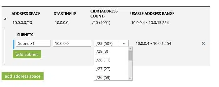 - Maximum VM count należy wybrać liczbę z zakresu adresów IP zawartych w wybranej masce. Jeśli spojrzeć na wartości z listy rozwijanej, widać, że największą maską (a więc najmniejszą liczbę adresów IP) jest 20, co daje 4096 adresów.