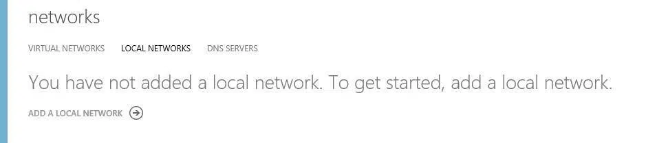 Aby móc skonfigurować połączenie VPN sieci wirtualnej Azure oraz lokalnej należy przejść w portalu azure do sekcji Networks i kliknąć na zakładkę Local Networks.