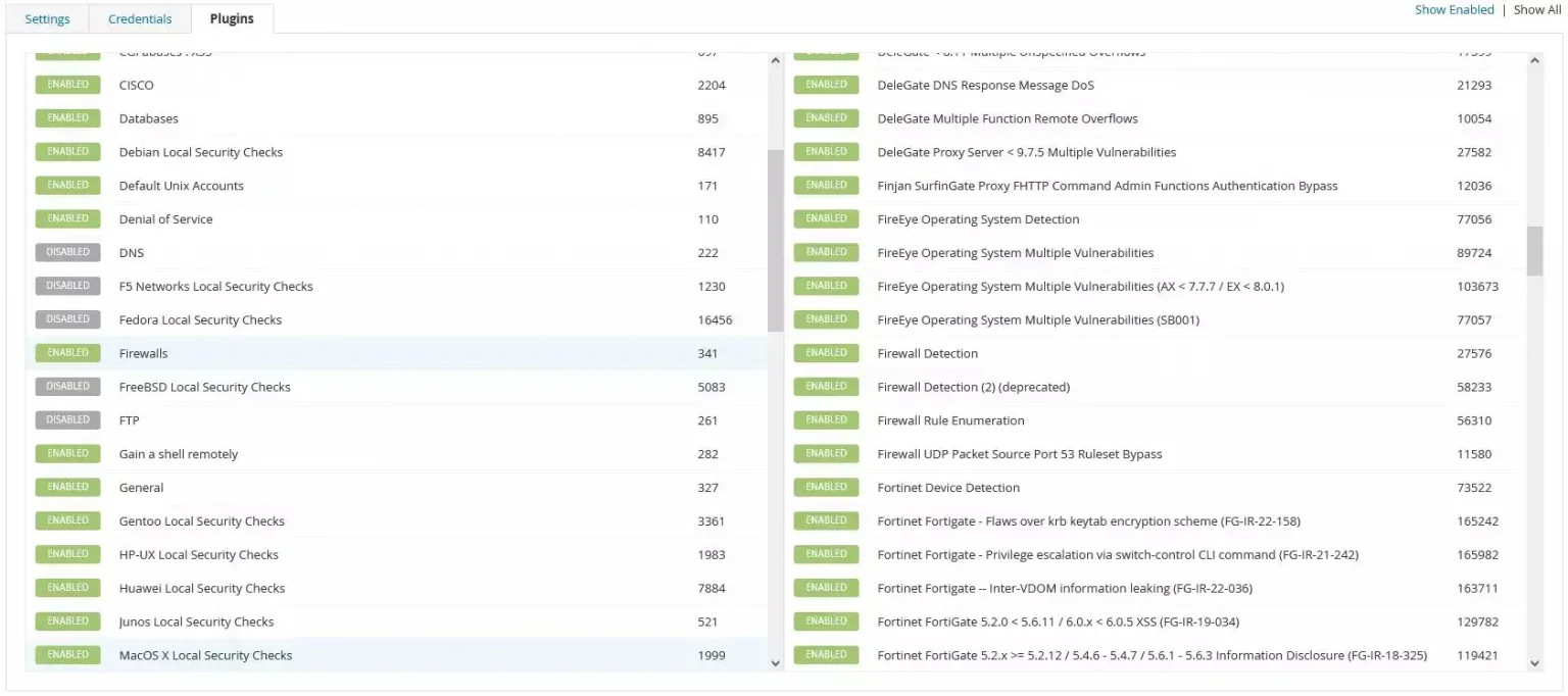 Poniżej przedstawiam listę pluginów dla konkretnych podatności. Tutaj możesz prześledzić jakie rodzaje podatności są zaimplementowane oraz wykorzystane do sprawdzenia obiektu. Możesz również odznaczyć te, które akurat nie są istotne, dzięki czemu skan będzie krótszy: