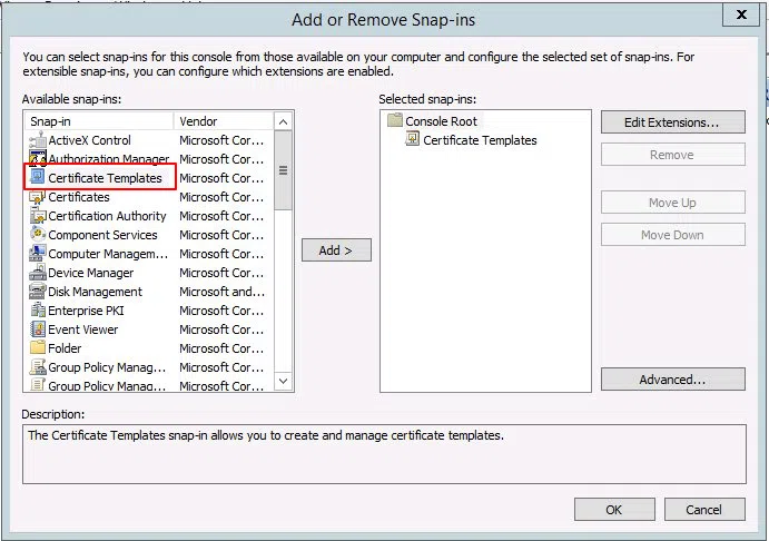 Otwieramy przystawkę „Certificate Templates” poprzez „Microsoft Management Console”.