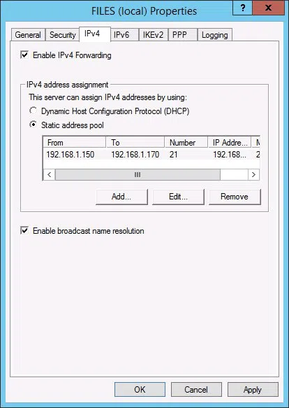 Możemy zdefiniować pulę adresów IP, które będą przydzielane klientom połączonym przez VPN, lub pozostawić opcję domyślną, a adresy będą przypisywane przez DHCP.