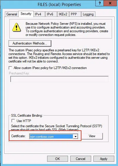 Przypisujemy wcześniej wygenerowany przez nas certyfikat, którym będą musieli autentykować się użytkownicy podczas połączenia.