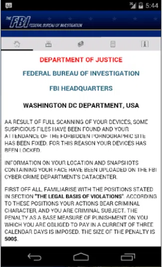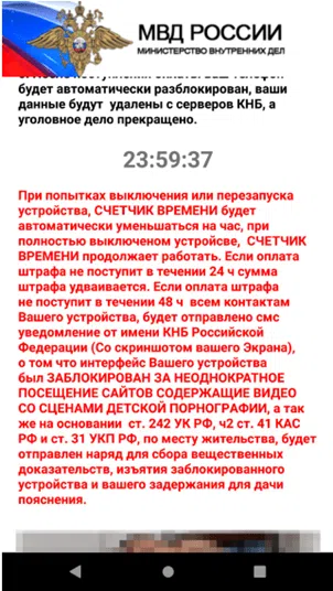 Ostatnio (październik 2020) nasilają się ataki na telefony komórkowe. W tym przypadku ekran telefonu jest przysłaniany pojawiającym się oknem, które zawiera informacje o naszym przewinieniu, karze oraz jak usunąć blokadę – oczywiście po uiszczeniu opłaty.
