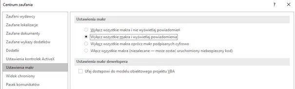 - nie zezwalaj na włączenie makr w programach pakietu Office;