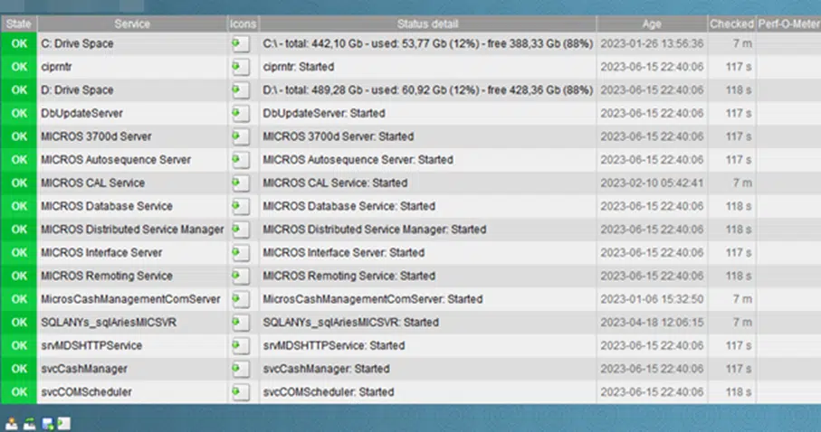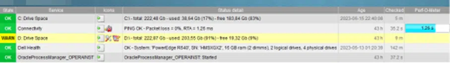Przykład monitorowanych usług
