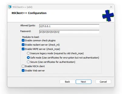 Przykładowa konfiguracja instalatora NSClient++