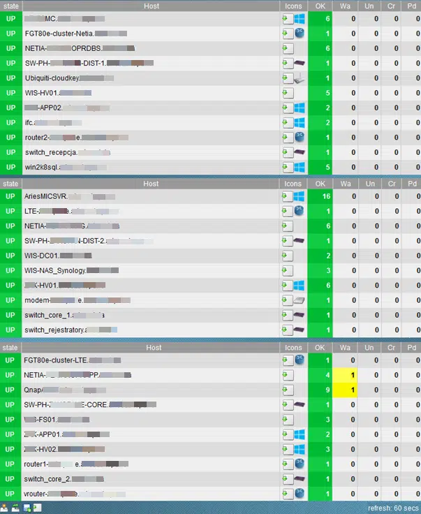 Przykład monitorowanych hostów