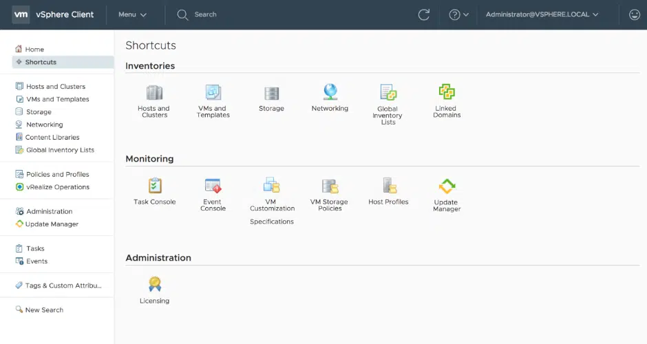 - VMware vCenter Server - służy do zarządzania wszystkimi podłączonymi hostami i maszynami wirtualnymi z poziomu pojedynczego, scentralizowanego interfejsu. Działa on w tle przez cały czas, monitorując infrastrukturę, wysyłając powiadomienia i alarmy czy wykonując zautomatyzowane zadania administracyjne. vCenter Server jest instalowany i uruchamiany na hoście ESXi w prekonfigurowanej maszynie wirtualnej działającej w oparciu o Photon OS – zoptymalizowanej pod kątem wirtualizacji dystrybucji Linuksa od VMware.