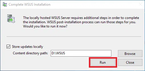 Przy pierwszym uruchomieniu ukaże się poniższy ekran, w którym zaakceptuj lub zmień lokalizację przetrzymywania aktualizacji a następnie kliknij Run.