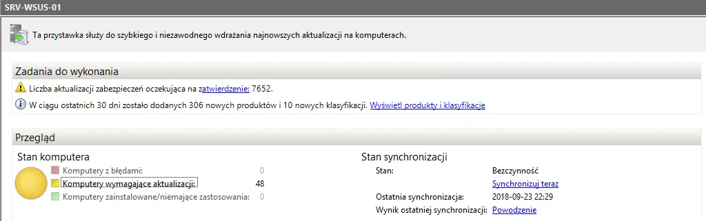 Po tych krokach mamy wstępnie przygotowany serwer WSUS do pracy. Następnym krokiem jest opublikowanie go w organizacji i zatwierdzenie aktualizacji po zsynchronizowaniu z serwerem nadrzędnym.